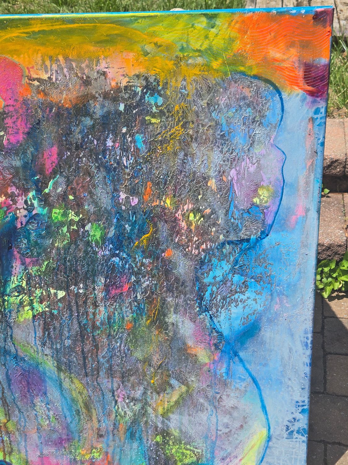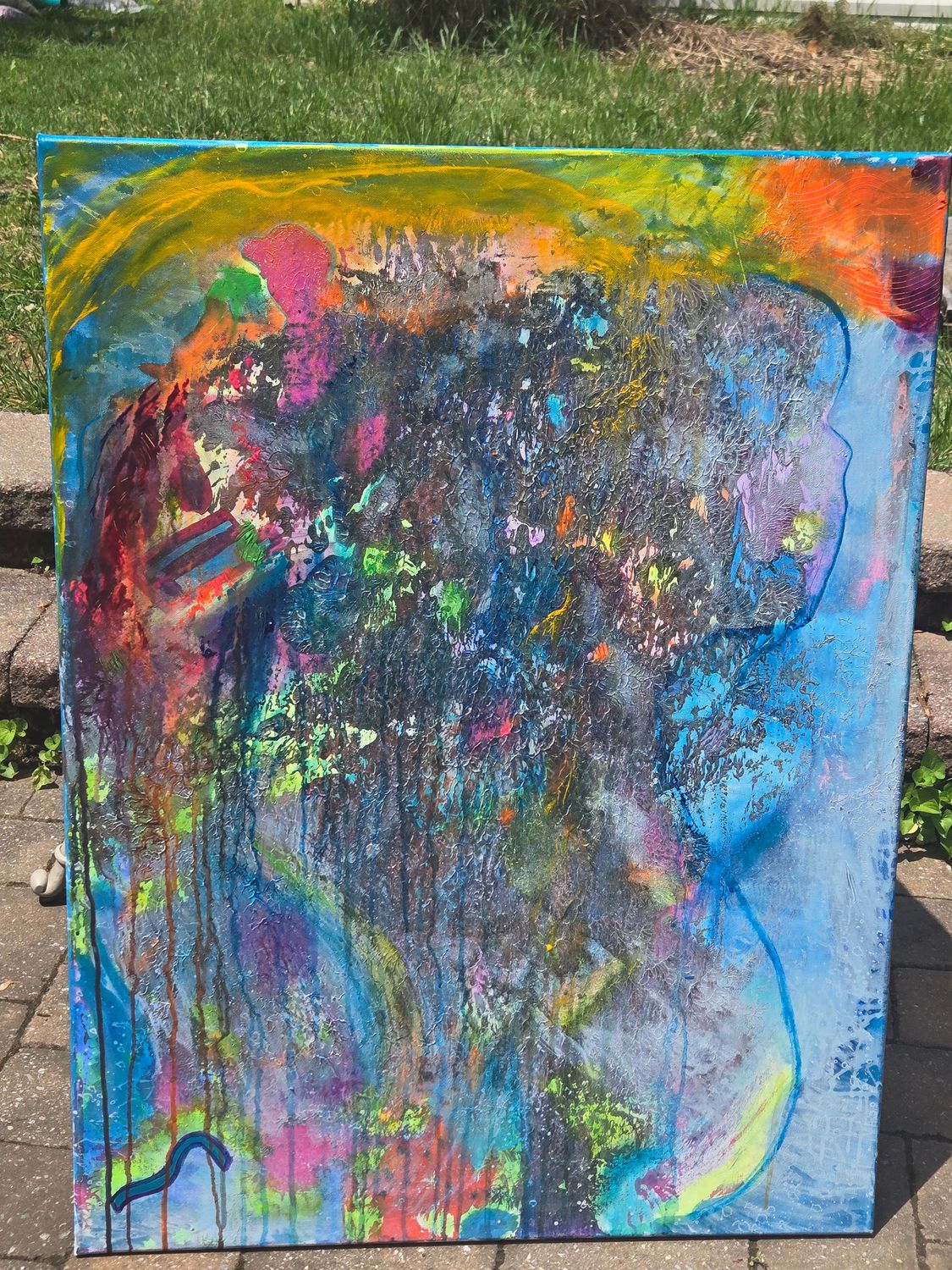 I created this piece after I moved into my new home in Maryland. I call it she conquered because I had just gone through a transition and I came out so clean and free on the other side and I am very proud of myself for conquering my fear and embracing my dream of creating art in a free flowing energy filled with unconditional love. This piece has a sister piece too, I am sure you will be able to tell which one.